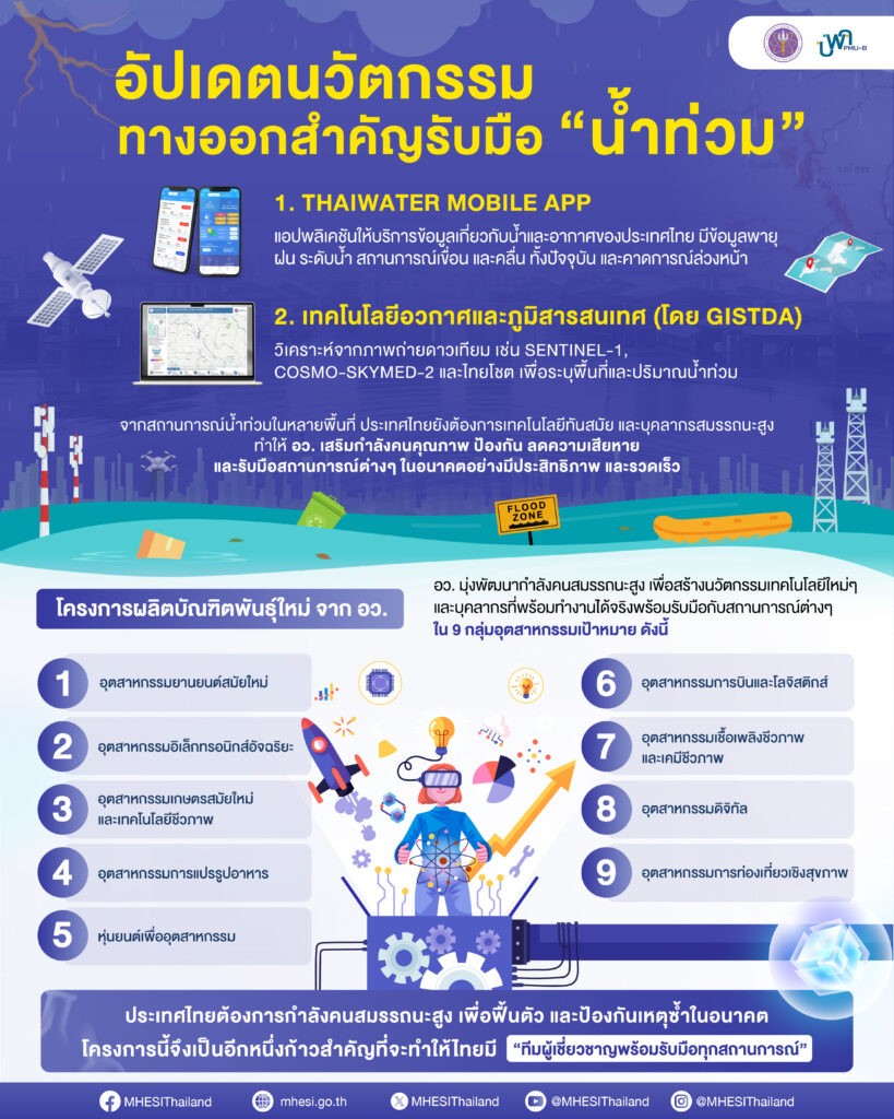 ทุกครั้งที่เกิดน้ำท่วม เราไม่ได้เห็นแค่วิกฤต แต่เห็นสัญญาณที่บ่งบอกว่า การรับมือแบบเดิม ๆ ไม่เพียงพออีกต่อไป สถานการณ์น้ำท่วมในหลายพื้นที่ตอกย้ำว่า ถึงเวลาที่ประเทศไทยต้องก้าวนำด้วยเทคโนโลยีที่แม่นยำ และกำลังคนที่มีทักษะสูงเพื่อป้องกันความเสียหายในระยะยาว และนี่คือการอัปเดตสำคัญที่สุดเกี่ยวกับนวัตกรรมที่ อว. สร้างขึ้นมา…