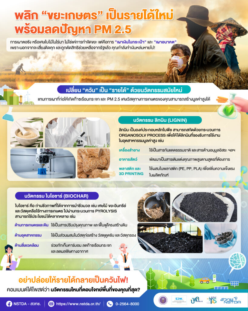 #อว #รวพ #บพค #ธัชวิทย์ #สวทช #นวัตกรรมเกษตร #ลดPM25 #ลิกนิน #ไบโอชาร์ #Biochar #Lignin #เกษตรยั่งยืน #SmartFarming